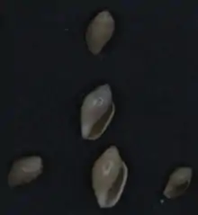 | Shells of Rivomarginella electrum | |