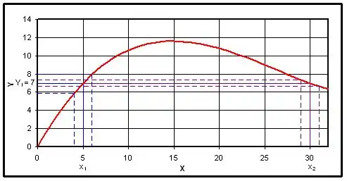 Consider the graph below of a relationship between an input variable x and the output Y, for which it is desired that a value of 7 is taken, of a system of interest. It can be seen that there are two possible values that x can take, 5 and 30. If the tolerance for x is independent of the nominal value, then it can also be seen that when x is set equal to 30, the expected variation of Y is less than if x were set equal to 5. The reason is that the gradient at x = 30 is less than at x = 5, and the random variability in x is suppressed as it flows to Y.