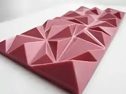 Ruby chocolate is a style or distinct variety of chocolate that is pinkish or purple in colour. Barry Callebaut, a Belgian–Swiss cocoa company, introduced it as a distinct product on 5 September 2017 after beginning development of their product in 2004.[2][3][4] It has a pink color, and Barry Callebaut says it is a fourth natural type of chocolate (in addition to dark, milk, and white chocolate varieties).[5][6] Some other industry experts have said that some cacao pods are naturally pink or purple in colour, and thus pink chocolate has been available before.