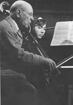 Ruth Laredo also played contemporary music, mainly in the beginning of her career in Marlboro. This was something Pablo Casals – who did not like music beyond the era of Brahms – disapproved of. He would stay home when Leon Kirchner would come to Marlboro for a performance.[3]: 277 In the 1983/1984 season she played the world premiere of Peter Martins's work called Waltzes with the New York City Ballet.[3]: 275 In 1989 she played Wallingford Riegger's twelve-tone Variations for Piano and Orchestra at Carnegie Hall with the American Composers Orchestra under Paul Lustig Dunkel.[14] Her repertoire included also works by Franz Liszt, Arnold Schoenberg, Béla Bartók, Anton Webern and Alban Berg.