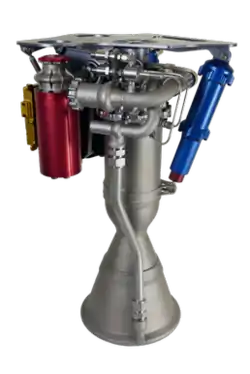 Rutherford is a liquid-propellant rocket engine designed by aerospace company Rocket Lab[8] and manufactured in Long Beach, California.[9] The engine is used on the company's own rocket, Electron. It uses LOX (liquid oxygen) and RP-1 (refined kerosene) as its propellants and is the first flight-ready engine to use the electric-pump feed cycle. The rocket uses a similar engine arrangement to the Falcon 9; a two-stage rocket using a cluster of nine identical engines on the first stage, and one vacuum-optimized version with a longer nozzle on the second stage. This arrangement is also known as an octaweb.[10][6][7] The sea-level version produces 24.9 kN (5,600 lbf) of thrust and has a specific impulse of 311 s (3.05 km/s), while the vacuum optimized-version produces 25.8 kN (5,800 lbf) of thrust and has a specific impulse of 343 s (3.36 km/s).[11]
