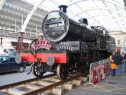 No. 88/53808 is owned by the Somerset & Dorset Railway Trust (SDRT), based on the Mid-Hants Railway. Purchased for preservation in 1969, it returned to service following restoration at the West Somerset Railway in August 1987 in BR Black (with the Early Crest), and ran up to Spring 1996 when it was withdrawn for overhaul, during which time it only made one visit away from the WSR, to the Severn Valley Railway in September 1995. After overhaul it returned to service in December 2005 in S&DJR blue livery, which it never carried in service. Again based at the WSR it made three return visits to the SVR in March 2007, March 2008 and September 2014, as well as first time visits to the Mid-Hants Railway in September 2010, and the Great Central Railway in October 2011, before being withdrawn for overhaul in October 2014. This second overhaul was completed in February 2016, with the engine being repainted back into BR black (with the Late Crest) and its BR number 53808. From autumn 2020 the locomotive is now based at the Mid-Hants Railway and in November 2023 the locomotive was withdrawn from service for overhaul after working its final trains on November 4, 2023.[5] At present no confirmation has been made regarding when the engines overhaul will commence.