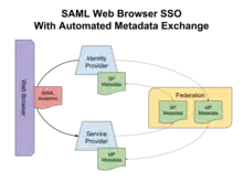 - ↑ Metadata Schema for the OASIS Security Assertion Markup Language (SAML) V2.0. OASIS Standard, March 2005. Document ID saml-schema-metadata-2.0 http://docs.oasis-open.org/security/saml/v2.0/saml-schema-metadata-2.0.xsd