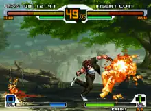 Arcade version screenshot showcasing a match between Kyo Kusanagi and Ryu.