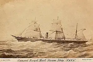 SS Java was a British and French ocean liner built in 1865 at Glasgow by J. G. Thompson & Co. It served for the Cunard Line. One passenger, the musician Philo Adams Otis, noted:[1]
