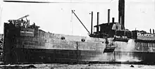 The SS Samoa was a 1,997-ton cargo ship that was able to escape an attack off the coast of California in the early days of World War II. The Samoa was built under a United States Shipping Board (USSB) contract in 1918 as the SS Muerthe, but was launched as the USS Lake Pepin, named after Lake Pepin, by the McDougall Duluth Shipbuilding Company of Duluth, Minnesota measured at 3,600 tons deadweight. She had a triple expansion engine steam engine with 1,250 horsepower (930 kW), a 251-foot (77 m) length, 43.5-foot (13.3 m) beam, a draft of 17 feet 8+12 inches (5.398 m), a top speed of 9.25 knots (17.13 km/h; 10.64 mph). The vessel had a crew of 52, with the hull # 9 and O.N.ID # 21699. The USS Lake Pepin (ID # 4215) was owned and operated by the United States Navy, commissioned at Montreal, Quebec, Canada on 4 September 1918. For World War I she was fitted with one 3"/50 caliber gun. The Navy put her in Naval Overseas Transportation Service as a coal carrier traveling between the United Kingdom and France as a United States Navy Temporary auxiliary ship. Her coal service ended in May 1919. In June 1919 she returned to the US with a cargo of World War I vehicles and weapons and unused ammunition. The US Navy decommissioned the Lake Pepin on 18 June 1919.[1] In 1923 she was, renamed Samoa purchased and operated by the Hammond Lumber Company. In 1936 she was sold to the Wheeler Logging Company of Portland, Oregon. In February of 1941 she was sold to W. A. Schaefer Company.