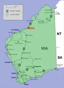 Sandfire is a location and roadhouse on the Great Northern Highway in Western Australia between Port Hedland and Broome. It is on the western edge of the Great Sandy Desert, and east of Wallal Downs and Mandora Station. It is inland, and located 20 km from the coast in the region of the Mandora Marsh and the Eighty Mile Beach, 45 km north of the Kidson Track turnoff. The area surrounding the roadhouse is of high cultural significance to the Nyangumarta people, who hold native title over the area.