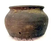 "Fine sandy ware" is defined as pottery with a hard and a slightly rough fabric, brownish-grey in colour with a sandy matrix. "Sandy ware" is divided into two different subtypes, referred to in the study as Fabric 75 and Fabric 76. Fabric 75 dates to the sixth to the seventh centuries. It has a hard fabric, with a rough, dimpled surface. Fabric colour is black or brownish-grey with a brown core. It has also has a fine, sandy matrix. Fabric 76 dates from the seventh to the eighth centuries. It is characterized as having a hard, course fabric. The colour is black and dark grey, and it has a sandy matrix.[2]