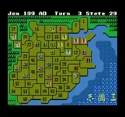 ![]() Romance of the Three Kingdoms for the Nintendo Entertainment System, with the logo in the bottom-right corner | |