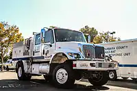 Santa Barbara County uses two different types of water tenders, two tactical and two supply units. The tactical units feature 4x4 capabilities and carry 1,500 gallons of water. They are specifically designed to carry water inside of a vegetation fire incident. These tenders are located at Station 22 in Orcutt and Station 32 in Santa Ynez. The supply units can carry 3,200 gallons of water to easily accessible areas. These are located at Station 18 in Gaviota and Station 41 in Cuyama.[10]