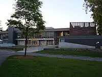 Political activism has played a crucial role in forming the spirit of the Sarah Lawrence community since the early years of the college. As early as 1938, students were volunteering in working-class sections of Yonkers, New York to help bring equality and educational opportunities to poor and minority citizens, and the Sarah Lawrence College War Board, organized by students in the fall of 1942, sought to aid troops fighting in World War II. During a time when the college's enrollment consisted of only 293 students, 204 signed up as volunteers during the first week of the War Board.[35] During the so-called McCarthy Years, a number of Sarah Lawrence's faculty members were accused by the American Legion of being sympathetic to the Communist Party, and were called before the Jenner Committee.[36] Since that time, activism has played a central role in student life, with movements for civil rights and against the Vietnam War in the 1960s and for student and faculty diversity in the 1980s. Also in the 1960s, students established an Upward Bound program for students from lower-income and poverty areas to prepare for college.[37] Theatre Outreach, the Child Development Institute, the Empowering Teachers Program, the Community Writers program, the Office of Community Partnership, and the Fulbright High School Writers Program are among the many programs founded since the 1970s to provide services to the larger community. In the late 1980s, students occupied Westlands, the main administrative building for the campus, in a sit-in for wider diversity. Students occupied Westlands again in 2016, in a sit-in supporting improved wages and safer working conditions for the college's recently unionized facilities workers. For many years, the college has been considered as being at the vanguard of the gay rights movement and many other progressive causes.