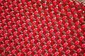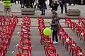 From the stage near the flame down the Maršal Tito Street, 11,541 empty red chairs were arranged in 825 rows (as an audience). This red “audience” stretched for 800 meters and ended in the area between the building of the Presidency of BiH and Ali-pasha’s Mosque. 11,541 empty chairs symbolized 11,541 victims of the war which, according to Research and Documentation Center were killed during the Siege of Sarajevo.[4][5] 643 of the chairs were small, representing the slain children. On some of them, during the day-long event, passers-by left teddy bears, little plastic cars, other toys or candy.[6]