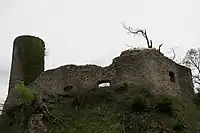 Today an old circular rampart, a tower and several wall segments remain of the former castle.
