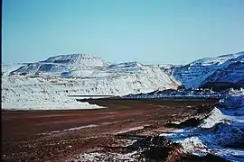 With a mean annual air temperature of -5.3 °C, Schefferville belongs to a zone with widespread permafrost occurrence and permafrost exists with a considerable thickness in the area. This resulted in difficulties when blasting in the open pit mine.