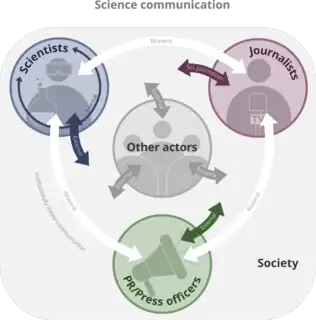 Another disadvantage of traditional journalism is that, once a science story is taken up by mainstream media, the scientist(s) involved no longer has any direct control over how his or her work is communicated, which may lead to misunderstanding or misinformation.[105][107] Research in this area demonstrates how the relationship between journalists and scientists has been strained in some instances.[109] On one hand scientists have reported being frustrated with things like journalists oversimplifying or dramatizing of their work, while on the other hand journalists find scientists difficult to work with and ill-equipped to communicate their work to a general audience.[110][109] Despite this potential tension, a comparison of scientists from several countries has shown that many scientists are pleased with their media interactions and engage often.[111]