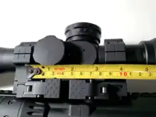 Metric dimensions on a Picatinny rail.