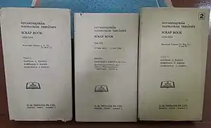 Volumes of Scrap Book edited by કાન્તિલાલ પંડ્યા (whose name is romanized as Kantilal Pandya), Sanmukhlal Pandya and Ramprasad Bakshi