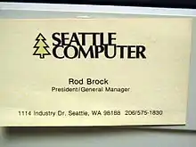 Twenty-two-year-old Tim Paterson was hired in June 1978 by SCP's owner Rodney Maurice Brock (26 August 1930 – 30 November 2018).[4][5] At the time, SCP built memory boards for microcomputers, but after attending a local seminar on Intel's just-released 8086 in late summer 1978, Paterson convinced Brock that his company should design a CPU board for the new chip. Paterson had a prototype working by May 1979,[6] and he took his "computer" over to Microsoft, who were working on an 8086 BASIC, which was working before the end of May.[7]