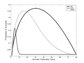 Each heuristic has a single parameter y. The figure (shown on right) displays the expected success probabilities for each heuristic as a function of y for problems with n = 80.