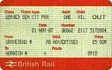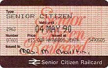 - ↑ "Senior Railcard: Tickets with which you can use your discount". Archived from the original on 3 July 2007.