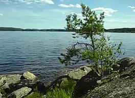 Setten is a lake that lies in Setskog in Aurskog-Høland municipality in Akershus. The lake lies in typical forest terrain. The lake has many bays and small islands, and is a popular canoeing, fishing and camping area. The lake is part of the Haldenvassdraget, and empties into Mjermen.