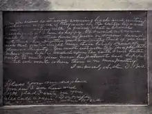 The topic most conclusively investigated was "slate writing," in which the medium has two slates fastened together, so that the writing surfaces faced each other, out of reach of the medium, with a small piece of pencil between the two slates. The medium holds the slates in her lap, and spirits purportedly write on the slates, sending the pencil outside the slates when finished. The Commission investigated Mrs. S.E. Patterson and Dr. Henry Slade, both widely respected practitioners of slate writing. Mrs. Patterson proved unable to perform when under the scrutiny of the Commission, while Dr. Slade was found to be practicing fraud: either composing long, well-written messages before the séance, or loosening the screws holding the slates together and scrawling nearly illegible messages while holding the slates in his lap. The Commission also requested that a "professional juggler" attempt slate writing, and found that he was able to provide demonstrations "much more remarkable" than the "puerile" attempts at fraud by Dr. Slade.[1] The Commission concluded that slate writing