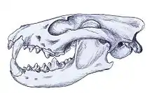 | Cynarctoides | C. lemur | Shannon County, South Dakota.[3] | Lower & upper parts of the formation.[3] | Jaw elements.[3] | A borophagine dog also known from the John Day, Brule & Browns Park formations. | ![]() |