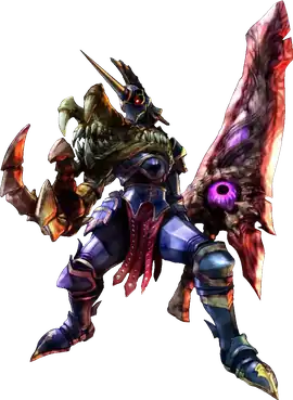 During the development of Soulcalibur, Nightmare's helmet went through several iterations with an aim to give a sense of "pressure" and "emit an atmosphere that terrifies anyone who sees them."[5] The finalized design was modeled after a unicorn, while his armor implemented imagery of a dragon, which the development team felt symbolized "evil, chaos and power".[6] Early drafts of his design took inspiration from a chimera, with a lion's head on either his shoulder or chest, and one design featuring a snake in place of his right arm, and considered the idea of either head breathing fire or being able to bite opponents. They instead shifted took a more traditional look of a "black knight" with a large mutated arm gripping his sword. Said mutated left arm originally took inspiration from a fiddler crab, giving what the developers felt was a "heteromorphic" appearance to the character. While in the concept artwork Nightmare is depicted with his left arm mutated to hold the sword, in some early designs fused with the sword itself,[5] in the final design his right arm is mutated instead, despite still wielding his sword with his left.[6]