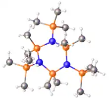 - ↑ Adamson, G. W.; Daly, J. J. (1970). "Crystal and Molecular Structure of 2,2,4,4,6,6-Hexamethyl-1,3,5-tris-(trimethylsilyl)cyclotrisilazane, C15H45N3Si6, a Compound Containing a Six-Membered Ring in the 'Boat' Form". J. Chem. Soc. A: 2724–2728. doi:10.1039/j19700002724.