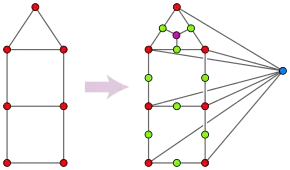 Simplex graphs were introduced by Bandelt & van de Vel (1989),[3] who observed that a simplex graph has no cubes if and only if the underlying graph is triangle-free, and showed that the chromatic number of the underlying graph equals the minimum number n such that the simplex graph can be isometrically embedded into a Cartesian product of n trees. As a consequence of the existence of triangle-free graphs with high chromatic number, they showed that there exist two-dimensional topological median algebras that cannot be embedded into products of finitely many real trees. Imrich, Klavžar & Mulder (1999) also use simplex graphs as part of their proof that testing whether a graph is triangle-free or whether it is a median graph may be performed equally quickly.