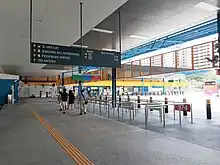 In 2011, the terminal was renovated and refurbished to provide full wheelchair accessibility for wheelchair-bound passengers. This included the installation of wheelchair ramps for every bus berth. In 2014, addition and alteration works were carried out under LTA Contract VT353,[47] which was awarded to TQC Builders Pte. Ltd. in April 2013. The contract included to installation and construction of a new annexe at the terminal, with public restrooms, a driver's lounge and ancillary rooms, built on the space once occupied by the excess bus parking spaces; new rain shades, seating and wall mounted fans were also installed, with a new coat of paint applied to the structure.[48]