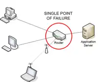 A single point of failure (SPOF) is a part of a system that, if it fails, will stop the entire system from working.[1] SPOFs are undesirable in any system with a goal of high availability or reliability, be it a business practice, software application, or other industrial system.