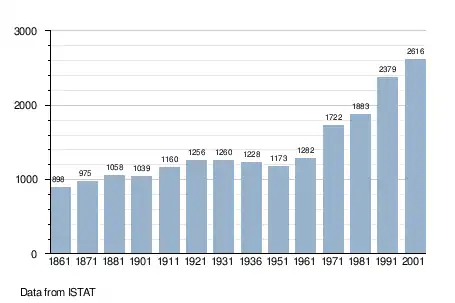 - ↑ "Popolazione Residente al 1° Gennaio 2018". Italian National Institute of Statistics. Retrieved 16 March 2019.