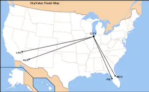 During the 2006–07 winter season, SkyValue flew to five destinations in the United States.[2]