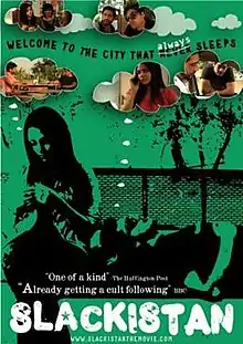 Slackistan is an independent film directed by London-based filmmaker, Hammad Khan,[2] and written by Khan and his wife, Shandana Ayub.[3][4] The film stars Shahbaz Hamid Shigri, Aisha Linnea Akhtar, Ali Rehman Khan, Shahana Khan Khalil, Osman Khalid Butt, Khalid Saeed, and Rafey Alam.[5] The film is distributed by Big Upstairs Films.[6]