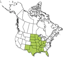 A. mutica is native to the United States, where it is distributed throughout the central and southcentral parts as its geographic range extends from western Pennsylvania to New Mexico and south to the westernmost Florida Panhandle (it is absent from other parts of Florida where replaced by the Florida softshell turtle). Smooth softshells turtles inhabit the Mississippi River drainage from Louisiana up to North Dakota and Pennsylvania, as well as the Colorado (of Texas), Brazos, Sabine, Pearl, Alabama and Conecuh (Escambia) river systems.[1] Two subspecies of A. mutica have been identified. The midland smooth softshell, Apalone mutica mutica, is found throughout the central United States. The other subspecies, Apalone mutica calvata, is found ranging from Louisiana to the panhandle of Florida.[4]