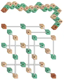 - ↑ Nobuhiro Go, Snake cube puzzle and protein folding, Biophysics and physicobiology 16, 256-263, 2019
