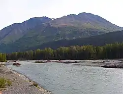 The Snow River is a 28-mile (45 km) tributary of Kenai Lake in the U.S. state of Alaska.[1] Beginning in the Kenai Mountains of the Kenai Peninsula, it flows southwest through Chugach National Forest where its main and south forks join to near Primrose at the southern inlet of the lake.[3] The river mouth is about 12 miles (19 km) northeast of Seward.[1] Along its final reaches, the river intersects the Iditarod Trail and passes under the Seward Highway.[3] The glacier from which it flows has an associated glacial dammed lake that releases every few years, often causing flooding in Primrose and Kenai Lake.[4]