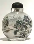 Apart from the original snuff bottles, snuff bottles had expanded to a new genre of inside painting in the late Qing dynasty. The inside painting was a skill that complied with traditional Chinese painting and the workmanship of original snuff bottles.[1] Many Western traders favoured this exquisite craft at that time and collected the majority of high-quality old snuff bottles. The works of four major inside painters such as Ma Shaoxuan and Ye Zhongsan's are appeared in the famous auctions.