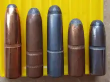 Lead-alloy bullets used with gunpowder firearms were unsatisfactory at the bullet velocities available from rifles loaded with nitrocellulose propellants such as cordite. By the late 19th century, lead-alloy bullets were being enclosed within a jacket of stronger mild steel or copper alloyed with nickel or zinc to reliably impart stabilizing rotation in rifled barrels. The lead-alloy core was swaged into a cup of the stronger metal covering the front and sides of the core, but leaving some of the core exposed on the base of the bullet. The bullet jacket may be described as a metal envelope, steel envelope, or hard envelope; and the jacketed bullet may be described as metal-covered, metal-patched, or metal-cased.[2] But while these new types of projectile were easier to stabilize at the new high velocities, it was discovered that the new jacketed design was actually less lethal than the softer lead-alloy types that had preceded it.