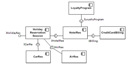 In the UML illustrations in this article, provided interfaces are represented by lollipop-symbols, while used interfaces are represented by open socket symbols.