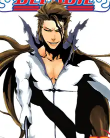 Sōsuke Aizen (藍染 惣右介, Aizen Sōsuke) is a fictional character in the Japanese manga series Bleach created by Tite Kubo. He is the main antagonist of the first half of the anime adaptation, as well as the most significant one for the entirety of the adaptation. He is the captain of the Fifth Division of Soul Reapers when he is introduced. He later betrays the Soul Society in search of immense power to overthrow and defeat the Soul King, before Ichigo Kurosaki and Kisuke Urahara defeat him. His former lieutenant is Momo Hinamori.