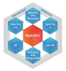 Spectre is a SPICE-class circuit simulator owned and distributed by the software company Cadence Design Systems. It provides the basic SPICE analyses and component models. It also supports the Verilog-A modeling language. Spectre comes in enhanced versions that also support RF simulation (SpectreRF) and mixed-signal simulation (AMS Designer).
