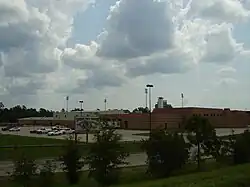 From 1969 to 1992, the Goodyear airship America was based in Spring from its large hangar visible just off Interstate 45. Takeoffs and landings were a major attraction and motorists continually pulled off to the interstate's shoulders to watch. In 1992 the America was moved to Akron, Ohio,[3] and the massive hangar was eventually torn down. As of 2020, the hangar's concrete foundation is still visible at the intersection of Holzwarth Road and Meadow Edge Lane west of Lowe's Home Improvement Center.