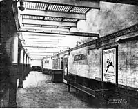 By late 1903, the subway was nearly complete, but the IRT Powerhouse and the system's electrical substations were still under construction, delaying the system's opening.[4]:186[11] The Spring Street station opened on October 27, 1904, as one of the original 28 stations of the New York City Subway from City Hall to 145th Street on the Broadway–Seventh Avenue Line.[4]:186[12]