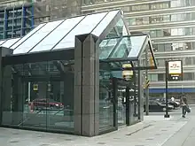 The station is near the Entertainment District, including Roy Thomson Hall, Royal Alexandra Theatre, Princess of Wales Theatre and Bell Lightbox, the home of the Toronto International Film Festival. Also nearby is the Financial District and the Toronto Stock Exchange, with access east of the station via the PATH pedestrian tunnel system to Sun Life Centre, Exchange Tower, First Canadian Place, Standard Life Centre, and Toronto-Dominion Centre.[3] Destinations west of the station, also available via PATH, include Metro Hall, Canadian Broadcasting Centre, RBC Centre, Ritz-Carlton Toronto and Simcoe Place,[3] and continuing further to the Metro Toronto Convention Centre on the south side of Front Street.