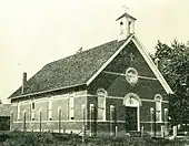 In 1895 St. Joseph church (left) was built just south of the railroad tracks on the east side of the highway, and the parish was divided at Jackson Street.[2]: 23 St. Joseph closed in 1956, to the dismay of some in its close-knit community.