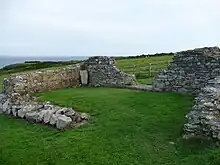 The Chapel of St Non is located on the coast near St David's in Pembrokeshire, West Wales.[1] Held by tradition to mark the birthplace of St David, the ruin cannot be accurately dated but is unusual in that it is aligned north–south rather than the usual east–west. Near to the ruined chapel is a retreat, a modern chapel and a holy well. The site was protected in the 1950s and is now the responsibility of the Welsh Heritage organisation Cadw.[1]