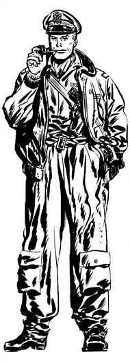 By 1946, Caniff had developed a worldwide reputation for his syndicated Terry and the Pirates. However, the rights for the strip he had created, written and drawn (for Chicago Tribune newspaper syndicate editor Captain Joseph Patterson) were entirely owned by the syndicate. Seeking creative control, Caniff negotiated with Field Enterprises for a new strip on which he could retain ownership.[3] Steve Canyon was "marketed and distributed by King Features, which was subcontracted as Field's selling agent".[4] Caniff's popularity meant that sixty clients agreed to run Steve Canyon before publication.[4] The last Caniff episode of Terry and the Pirates appeared in December 1946, and then George Wunder took over the strip. Caniff's new strip, Steve Canyon, debuted in 168 newspapers. In the 1950s, the strip was enormously popular, and Caniff and Steve Canyon appeared on the covers of both Time (1947) and Newsweek (1950).[4]