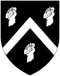 - Sir Henry Rolle (1545–1625), eldest son, married firstly Elizabeth Watts, daughter and heiress of Roger Watts of Somerset, secondly a Fortescue, daughter of John Fortescue (1525–1595) of Fallapit,[13] East Allington by his wife Honor Speccot (died 1606),[14] whose monumental brasses exist in East Allington Church.[15] His Exeter townhouse was the "Abbot's Lodge" (destroyed in 1942 during World War II bombing), in Cathedral Close within the precincts of Exeter Cathedral. He made alterations to that house and added decorative heraldic plaster escutcheons dated 1602, one of which showed Rolle impaling Watts, of six quarters (1st & 6th Watts: Argent, on a fesse vert between three eagle's heads erased sable as many crosses sarcelly of the first, the arms of Sir John Watts (died 1616), Lord Mayor of London in 1606)[16] the other Rolle impaling Fortescue.[17] The house had been the townhouse of the Abbot of Buckfast Abbey, which Abbey and much of its lands, including the Abbot's Lodge, had been acquired in 1545 by the patriarch George Rolle (d.1552) following the Dissolution of the Monasteries.[18] It had been used by George Rolle as his townhouse, by the name of "Buckfast Place" and was the place of his death in 1552. In 1609 he purchased from William Howard, 3rd Baron Howard of Effingham (1577–1615) several of the larger former holdings of Barnstaple Priory in Pilton and Bradiford, whose family had held the lands since the Dissolution of the Monasteries.[19]